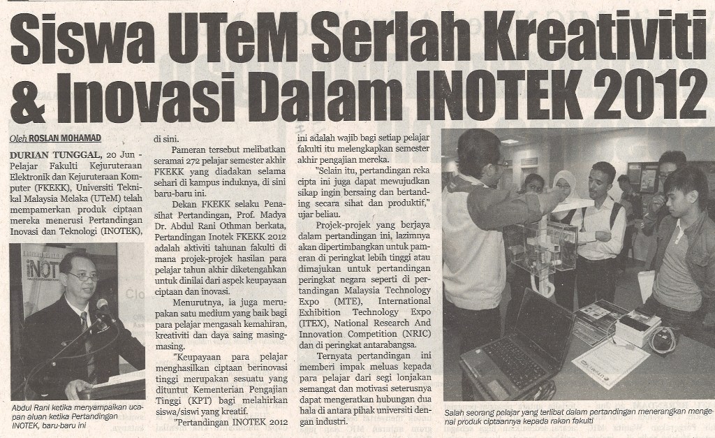 Siswa UTeM Serlah Kreativiti & Inovasi Dalam INOTEK 2012