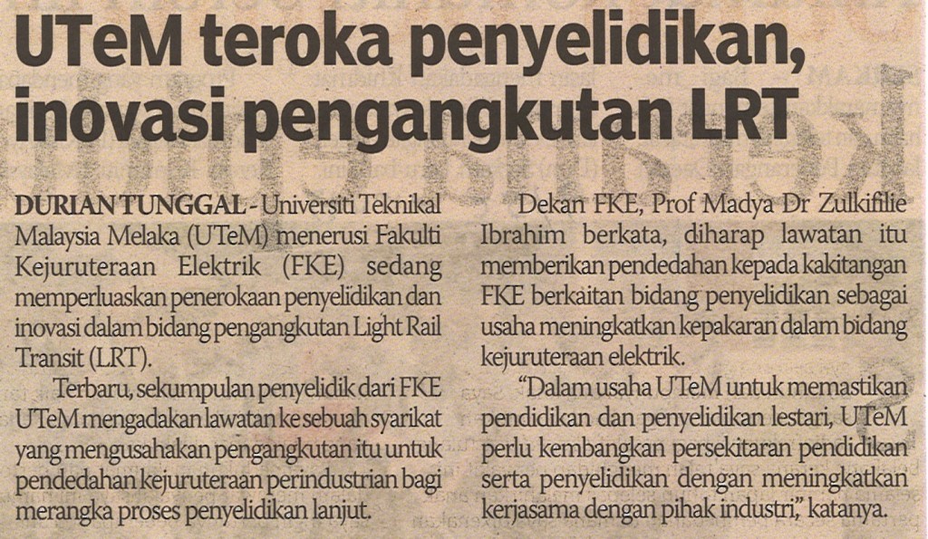 UTeM teroka penyelidikan, inovasi pengangkutan LRT