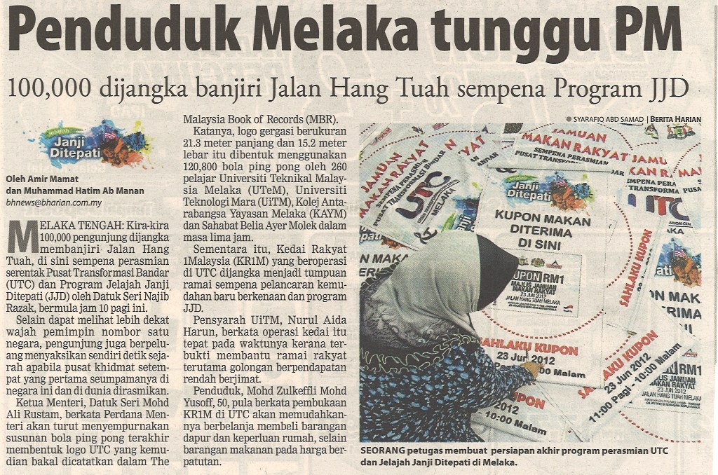 Penduduk Melaka tunggu PM 100,000 dijangka banjiri Hang Tuah sempena Program JJD