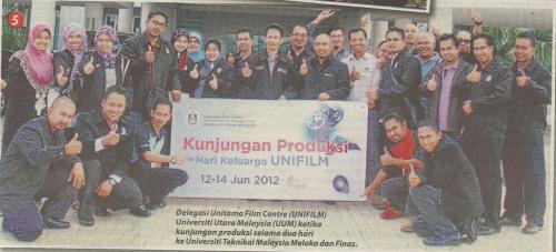 Delegasi Uniutama Film Centre (UNIFILM) Universiti Utara Malaysia (UUM) ketika kunjungan produksi selama dua hari ke Universiti Teknikal Malaysia Melaka dan Finas