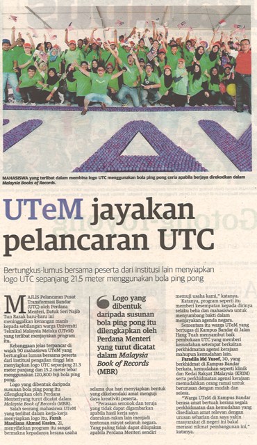 UTeM jayakan pelancaran UTC, Bertungkus-lumus bersama peserta dari institusi lain menyiapkan logo UTC sepanjang 21.5 meter menggunakan bola ping pong