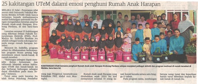 25 kakitangan UTeM dalami emosi penghuni Rumah Anak Harapan