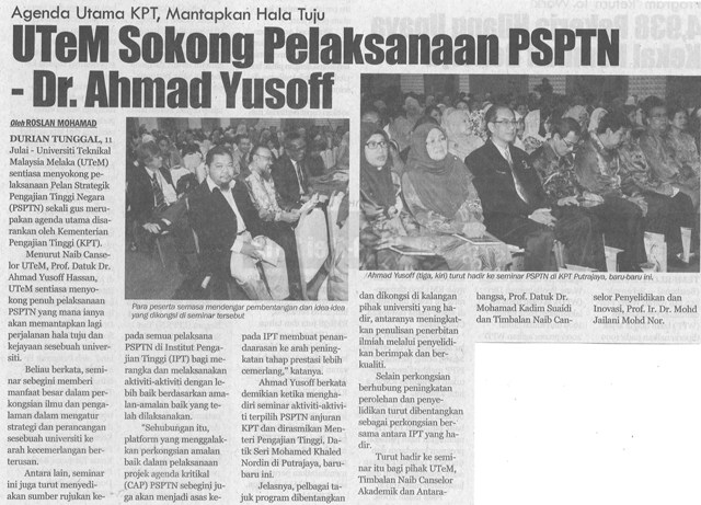 Agenda Utama KPT, Mantapkan Hala Tuju, UTeM Sokong Pelaksanaan PSPTN - Dr. Ahmad Yusoff