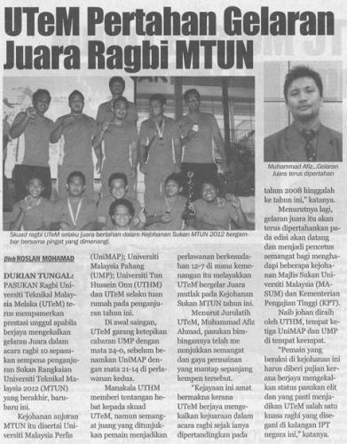 UTeM Pertahan Gelaran Juara Ragbi MTUN