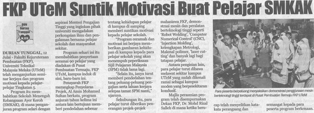 FKP UTeM Suntik Motivasi Buat Pelajar SMKAK
