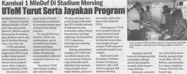 Karnival 1 MinDef di Stadium Mersing, UTeM Turut Serta Jayakan Program