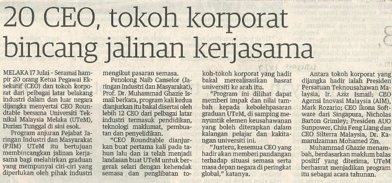 20 CEO, tokoh korporat bincang jalinan kerjasama