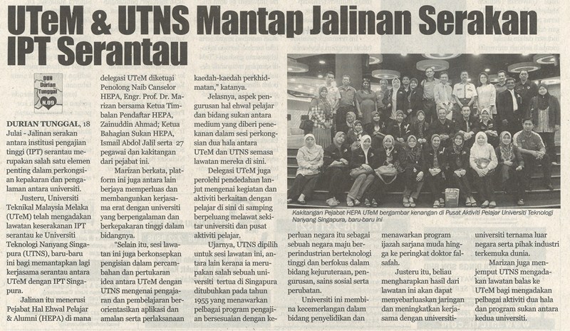 UTeM & UTNS Mantap Jalinan Serakan IPT Serantau