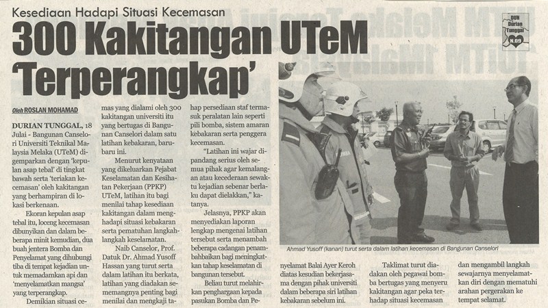 Kesediaan Hadapi Situasi Kecemasan 300 Kakitangan UTeM 'Terperangkap'
