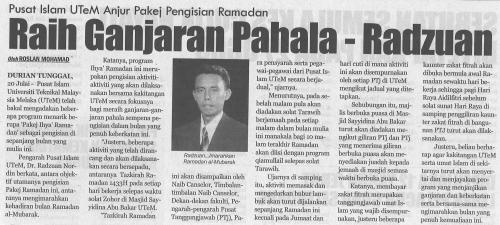 Pusat Islam UTeM Anjur Pakej Pengisian Ramadan Raih Ganjaran Pahala - Radzuan