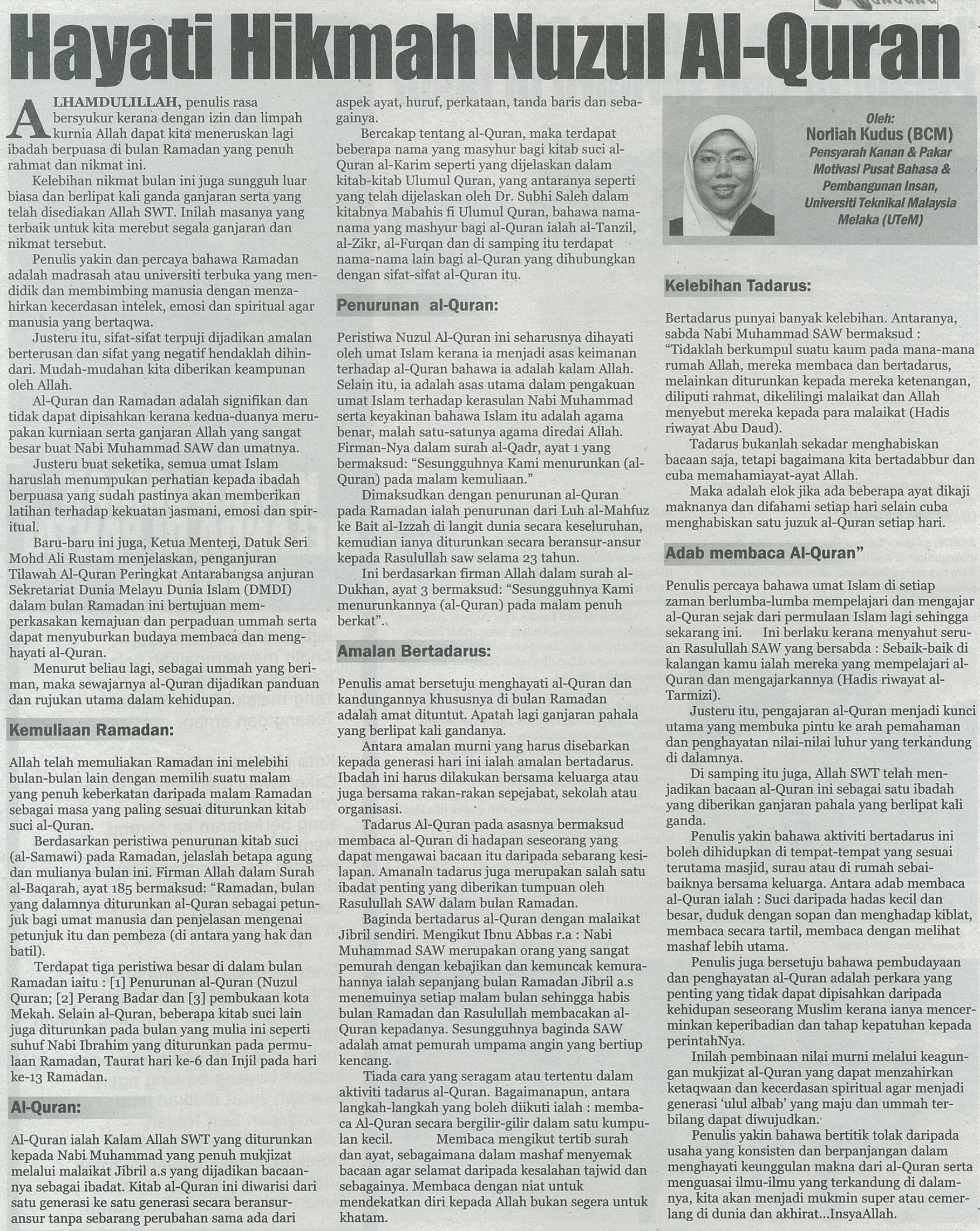 Hayati Hikmah Nuzul Al-Quran