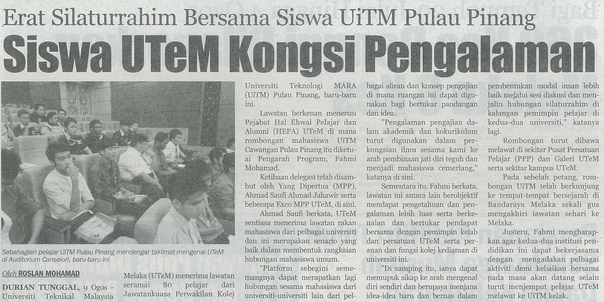 Erat Silaturrahim Bersama Siswa UiTM Pulau Pinang Siswa UTeM Kongsi Pengalaman
