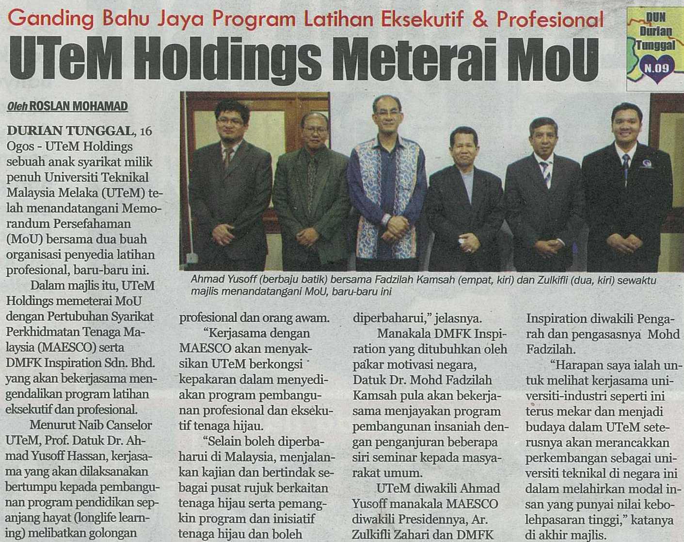 Ganding Bahu Jaya Program Latihan Eksekutif & Profesional UTeM Holdings Meterai MoU