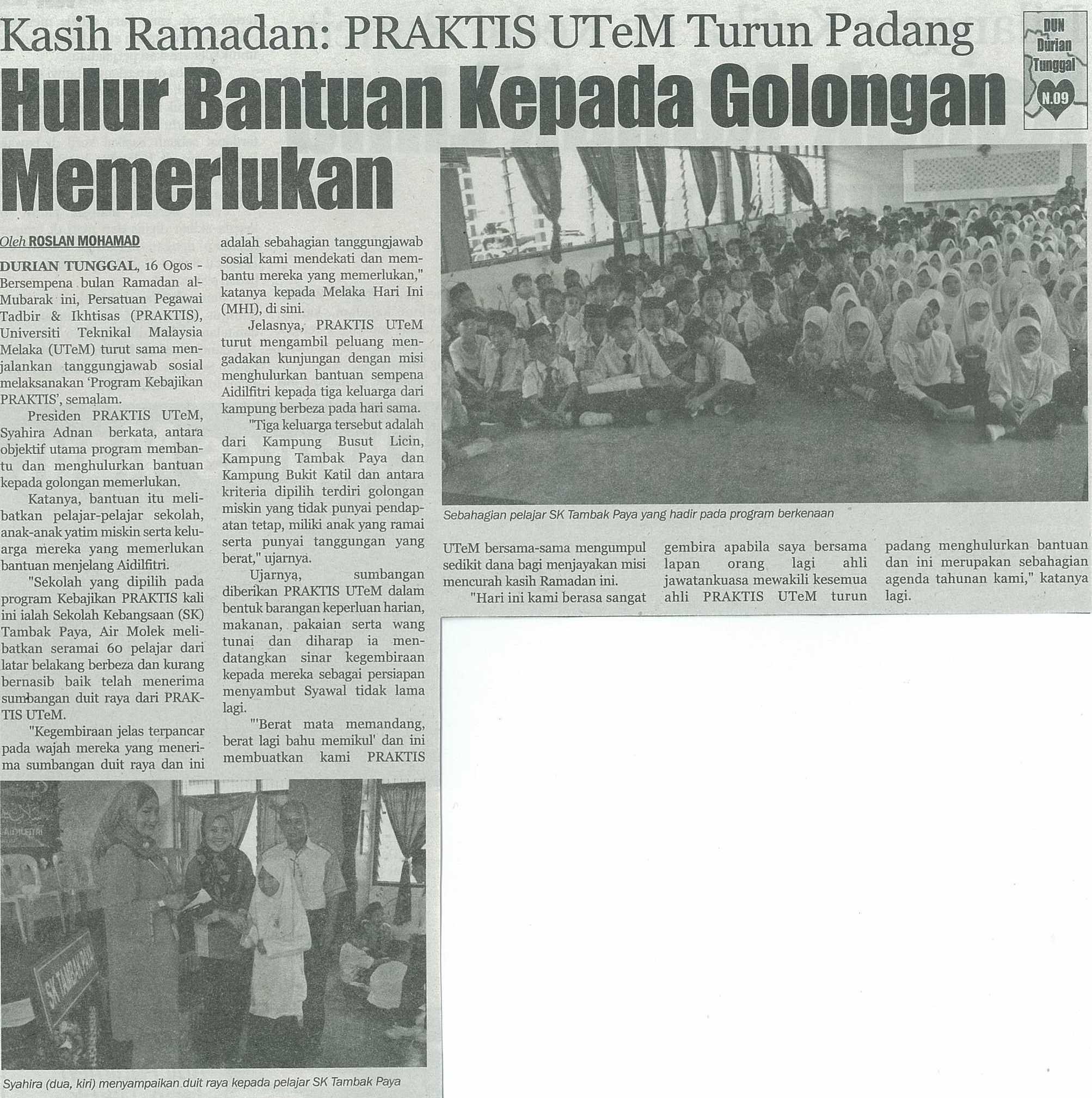 Kasih Ramadhan: PRAKTIS UTeM Turun Padang Hulur Bantuan Kepada Golongan Memerlukan