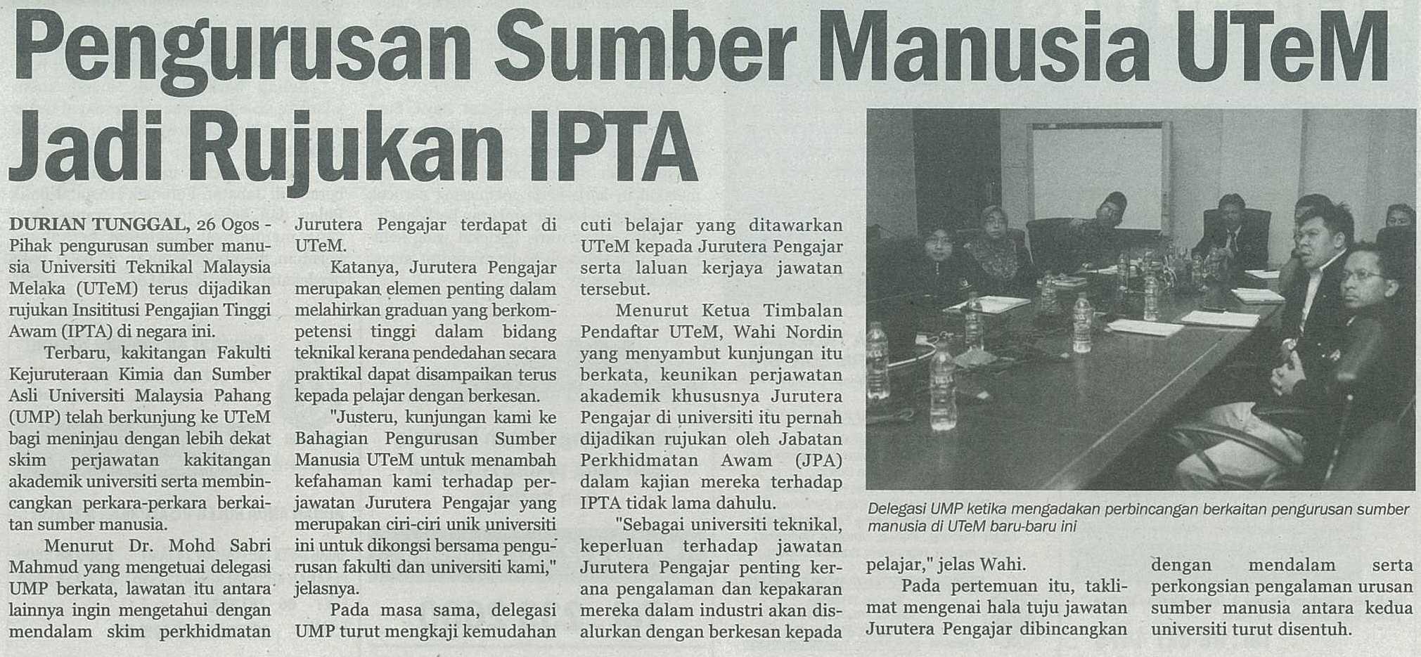 Pengurusan Sumber Manusia UTeM Jadi Rujukan IPTA