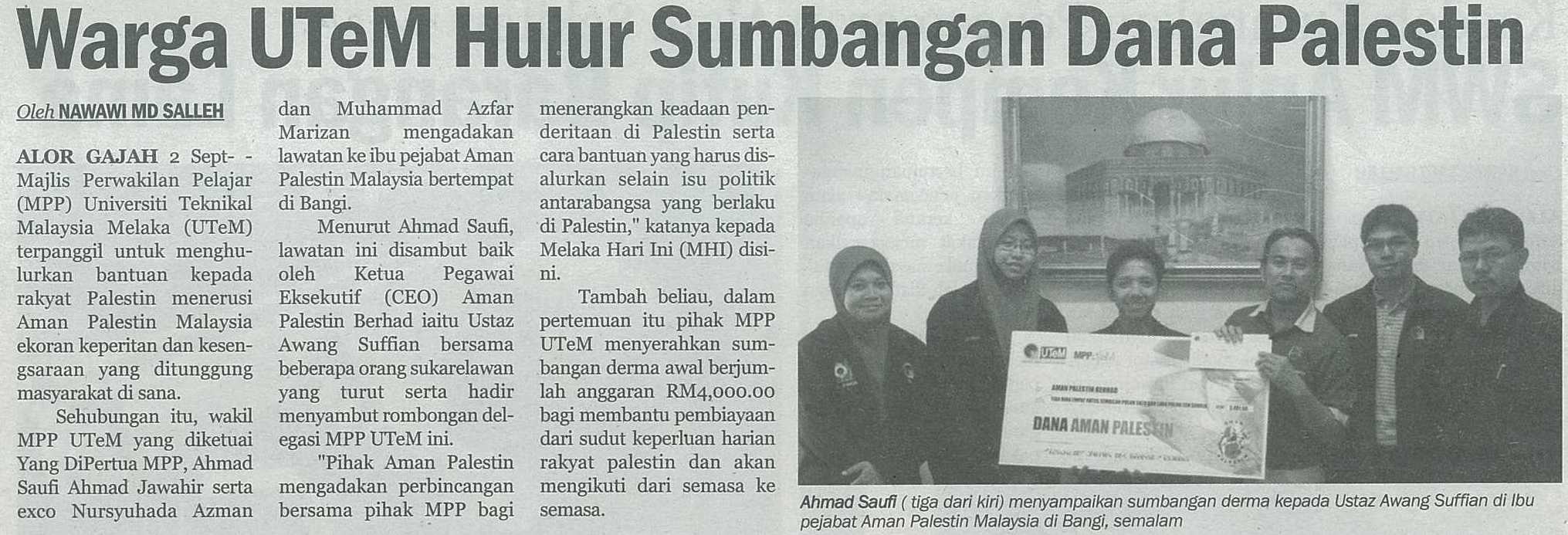 Warga UTeM Hulur Sumbangan Dana Palestin