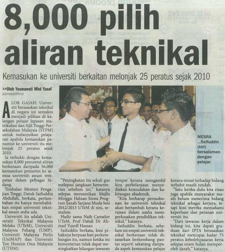 8,000 pilih aliran teknikal, kemasukan ke universiti berkaitan melonjak 25 peratus sejak 2010