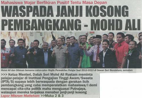 Mahasiswa Wajar Berfikiran Positif Tentu Masa Depan Waspada Janji Kosong Pembangkang - Mohd. Ali