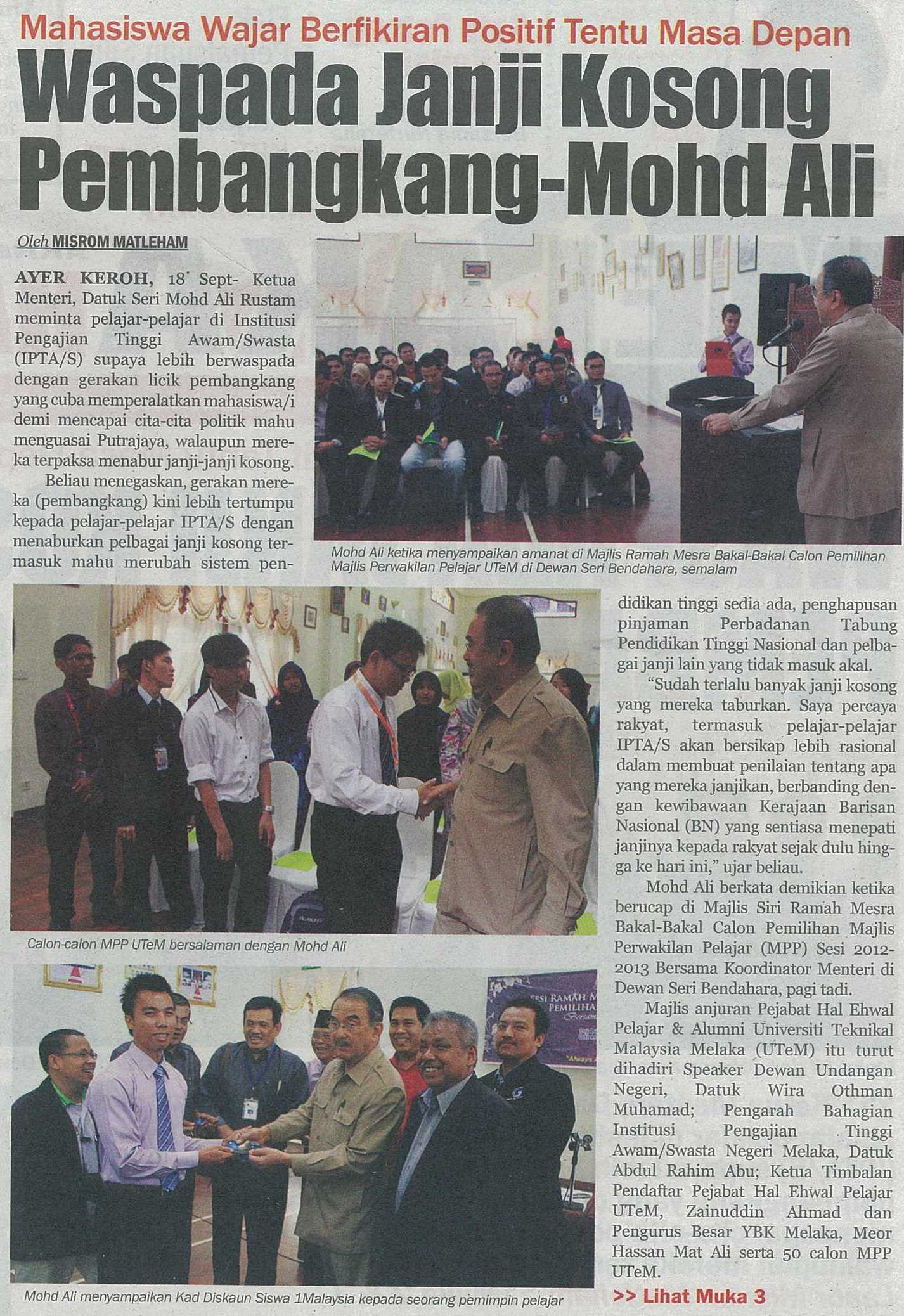 Mahasiswa Wajar Berfikiran Positif Tentu Masa Depan Waspada Janji Kosong Pembangkang - Mohd. Ali