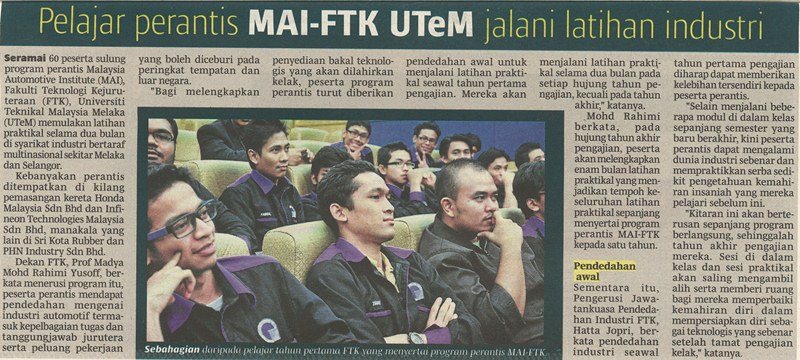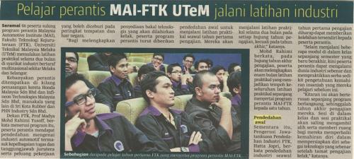 Pelajar perantis MAI-FTK UTeM jalani latihan industri