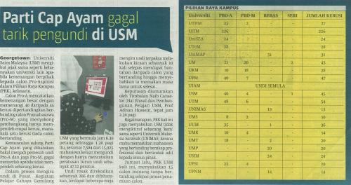 Parti Cap Ayam gagal tarik pengundi di USM