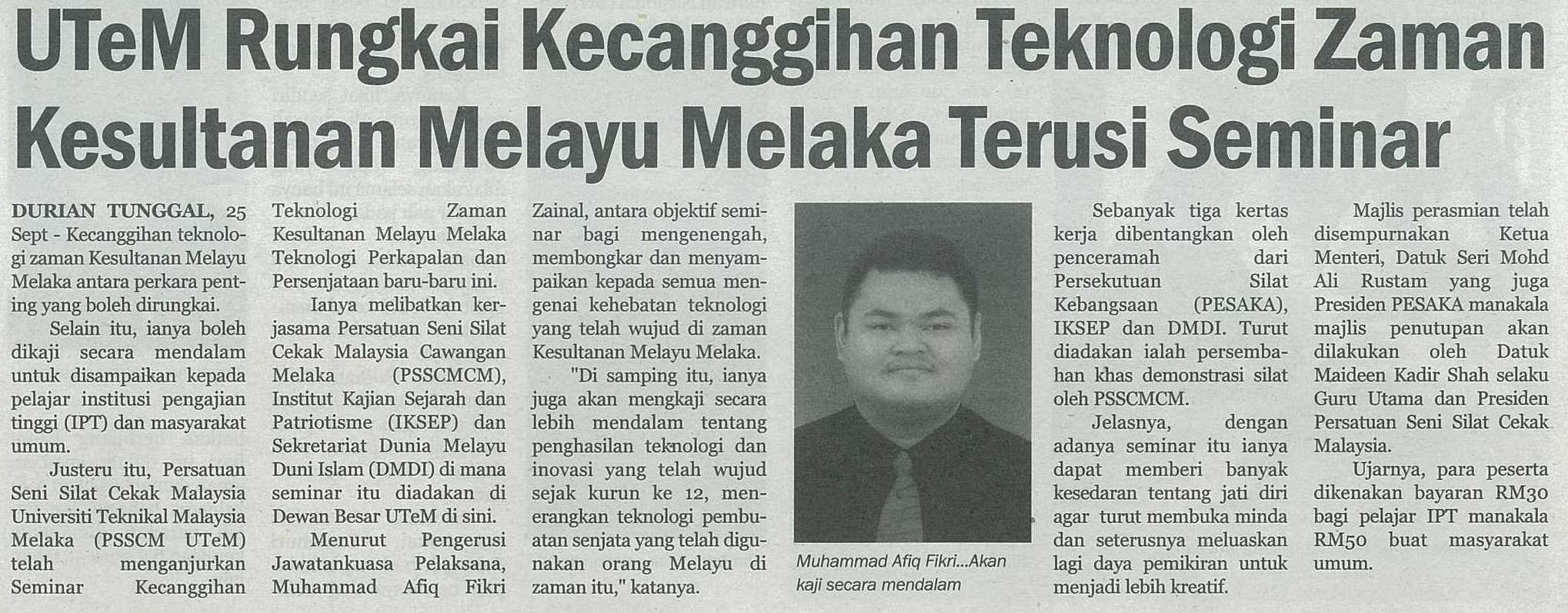 UTeM Rungkai Kecanggihan Teknologi Zaman Kesultanan Melayu Melaka Terusi Seminar