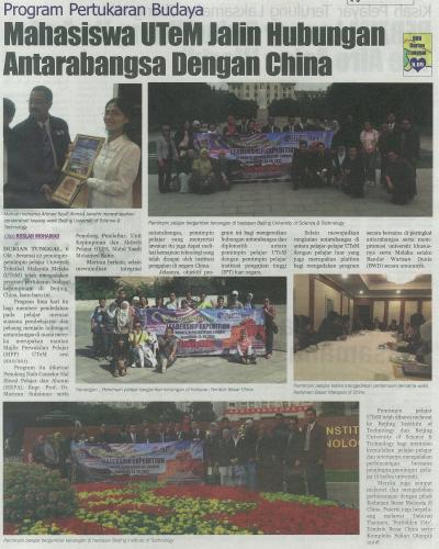 Program Pertukaran Budaya Mahasiswa UTeM Jalin Hubungan Antarabangsa Dengan China