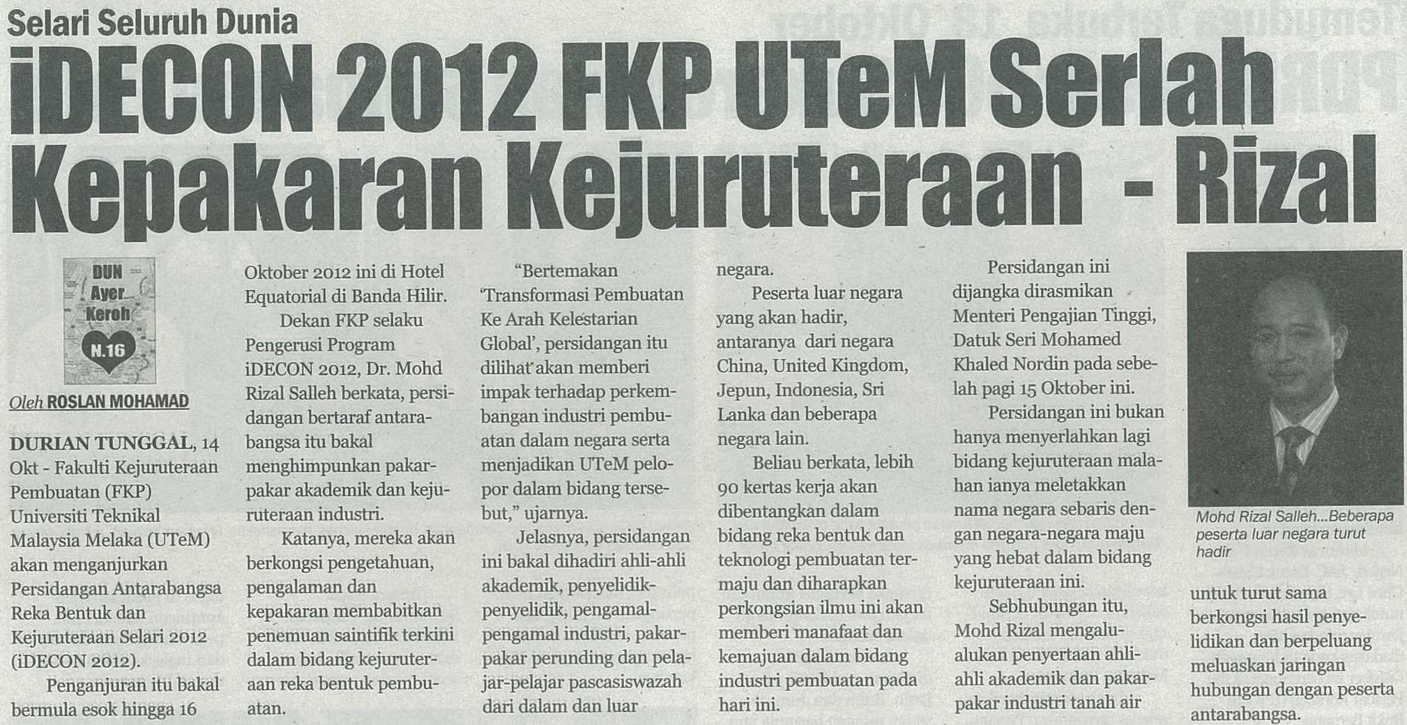 Selari Seluruh Dunia iDECON 2012 FKP UTeM Serlah Kepakaran Kejuruteraan - Rizal