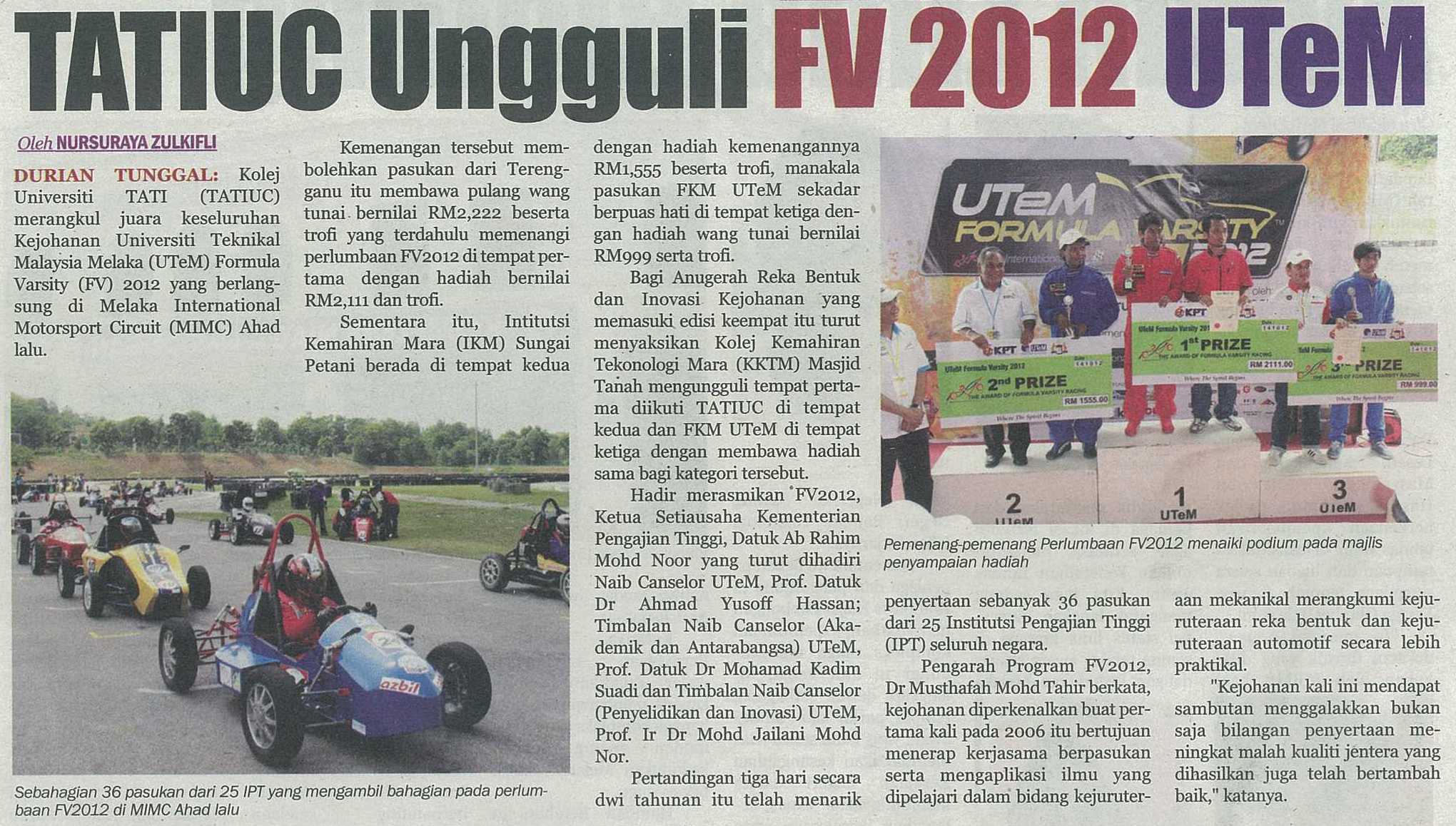 TATIUC Ungguli FV 2012 UTeM