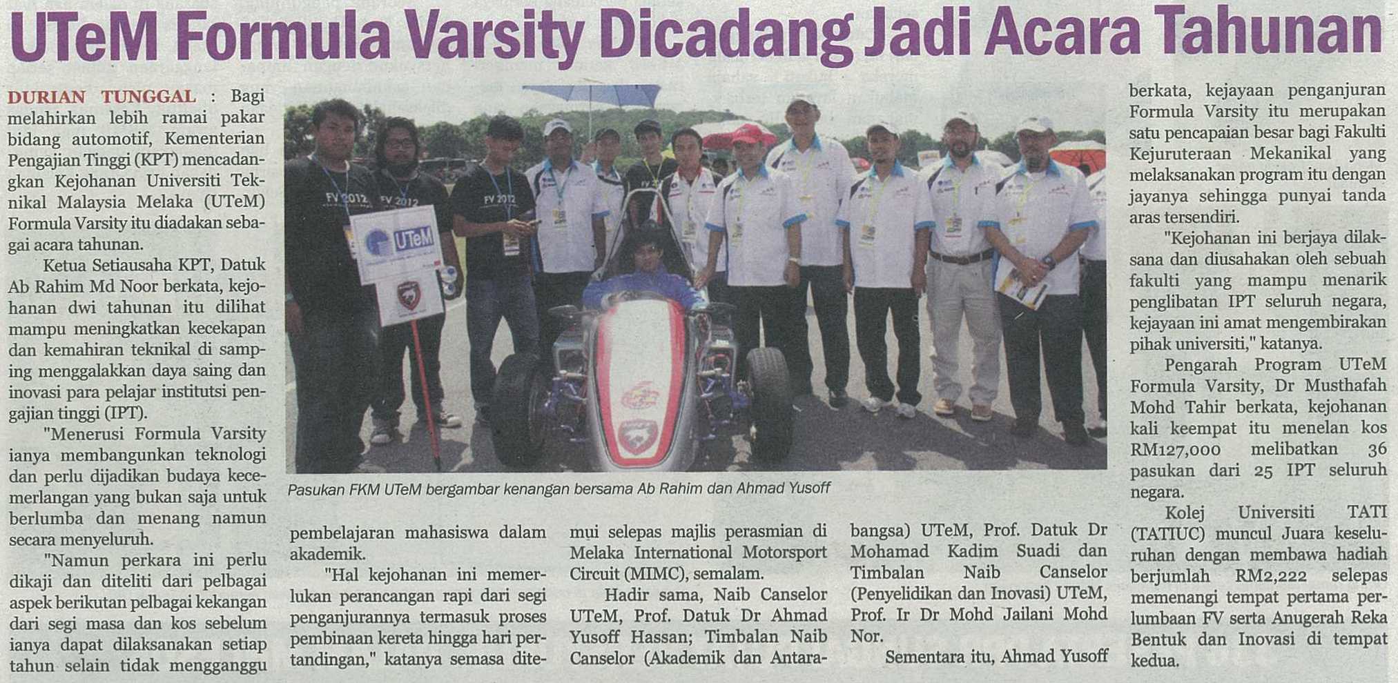 UTeM Formula Varsity Dicadang Jadi Acara Tahunan