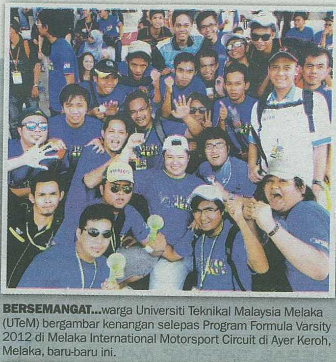 Berita Bergambar, Bersemangat- warga Universiti Teknikal Malaysia Melaka (UTeM) bergambar kenangan selepas Program Formula Varsity 2012 di Melaka International Motorsport Circuit di Ayer Keroh, Melaka, baru-baru ini.