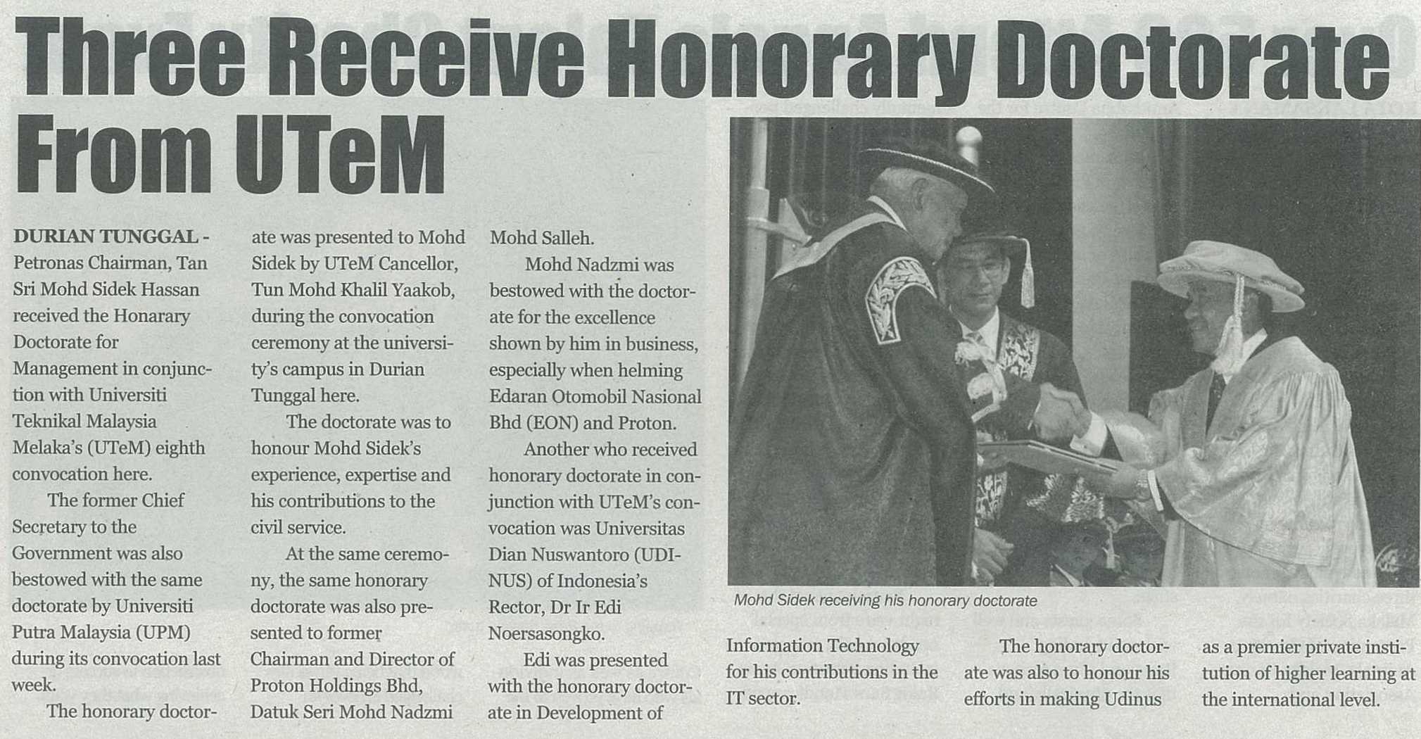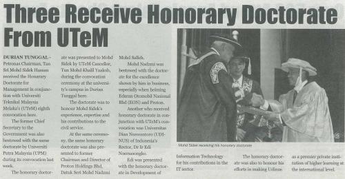 Three Receive Honorary Doctorate From UTeM