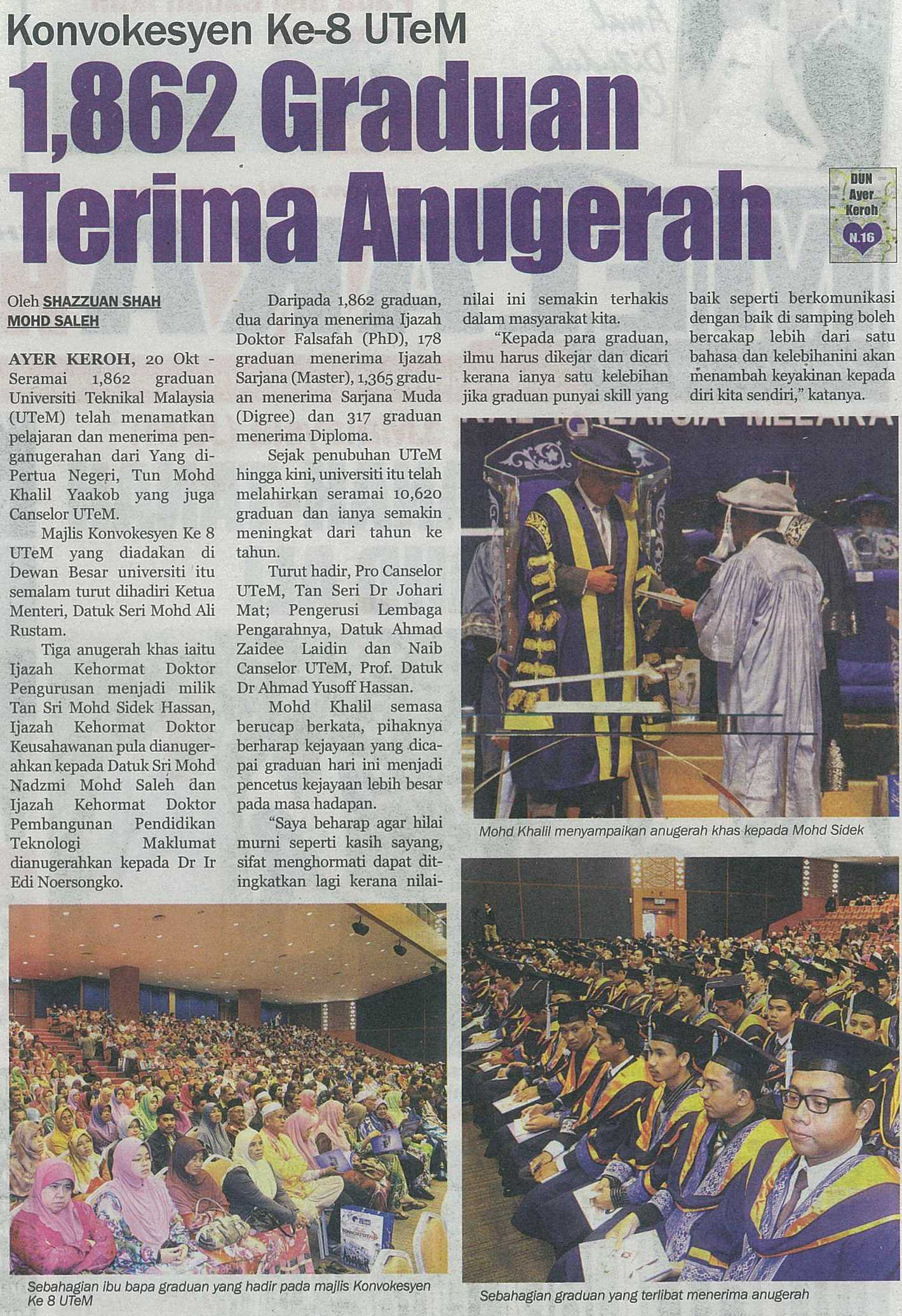 Konvokesyen Ke-8 UTeM 1,862 Graduan Terima Anugerah