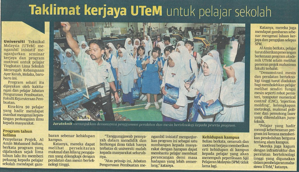 Taklimat kerjaya UTeM untuk pelajar sekolah