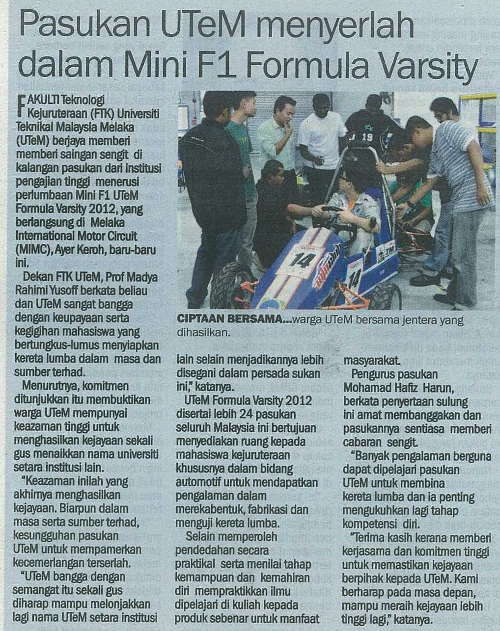 Pasukan UTeM menyerlah dalam Mini F1 Formula Varsity