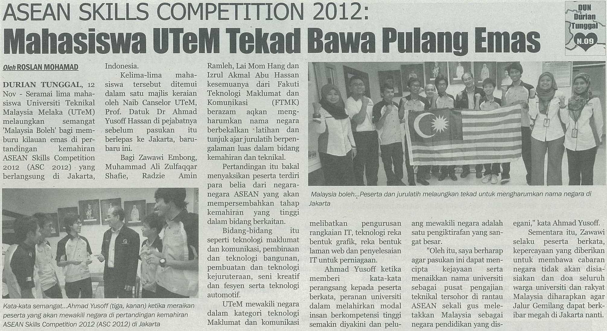 ASEAN SKILLS COMPETITION 2012: Mahasiswa UTeM Tekad Bawa Pulang Emas