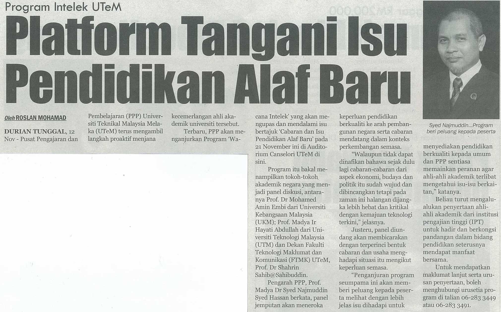Program Intelek UTeM Platform Tangani Isu Pendidikan Alaf Baru
