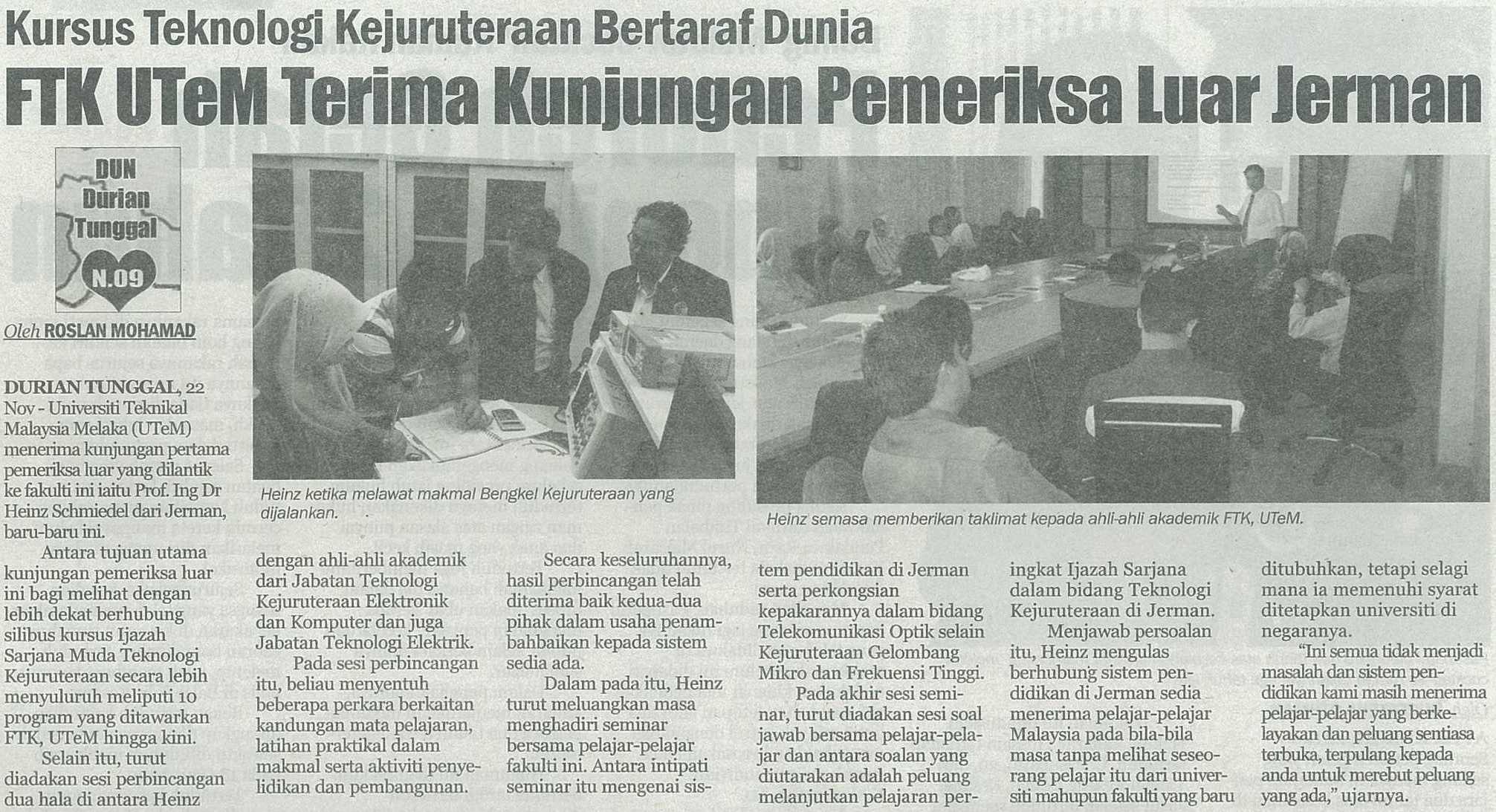 Kursus Teknologi Kejuruteraan Bertaraf Dunia FTK UTeM Terima Kunjungan Pemeriksa Luar Jerman