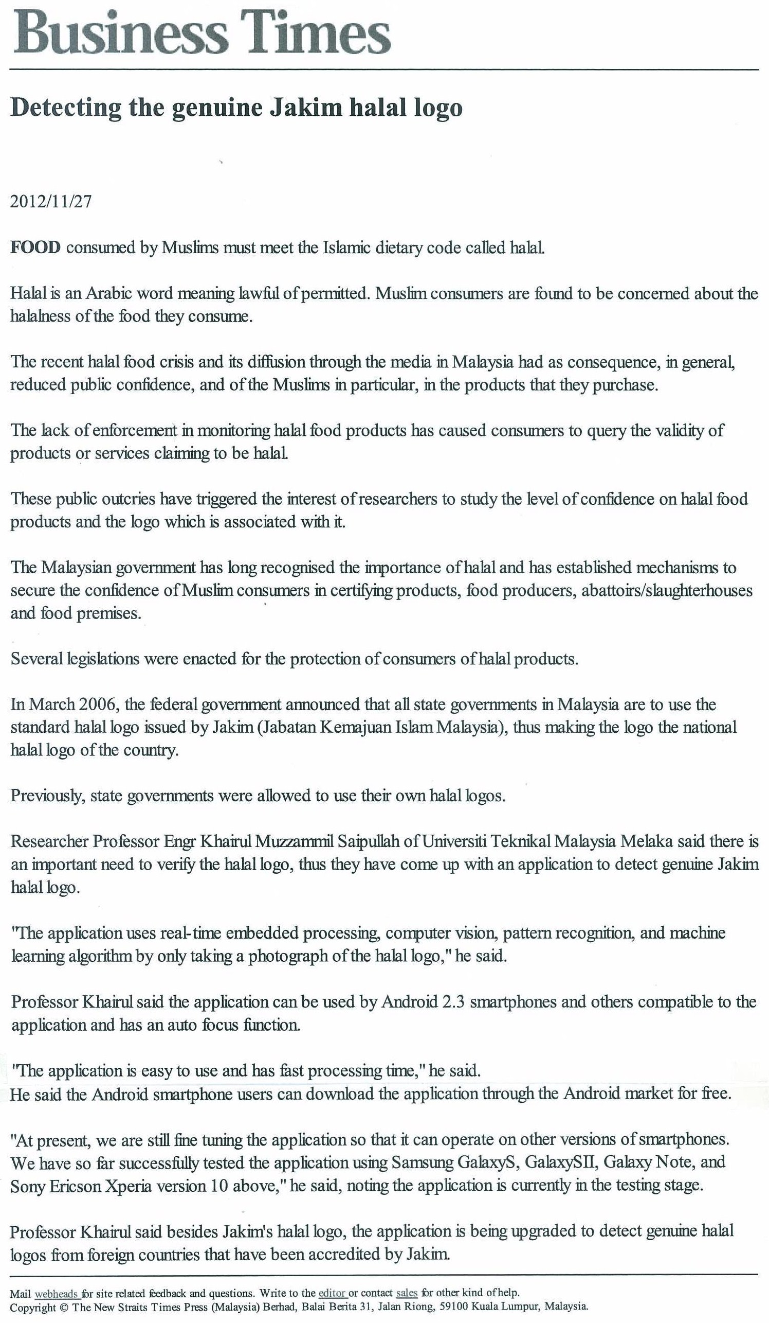 Business Times (Online)- Detecting the genuine Jakim halal logo
