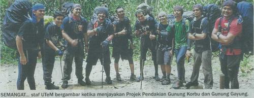 Berita Bergambar- Semangat... Staf UTeM bergambar ketika menjayakan Projek Pendakian Gunung Korbu dan Gunung Gayung