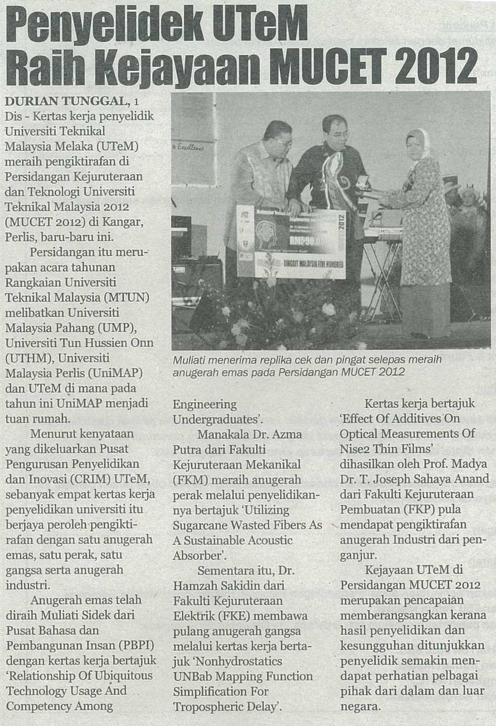 Penyelidek UTeM Raih Kejayaan MUCET 2012