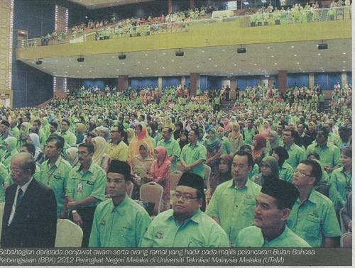 Berita Bergambar- Sebahagian daripada penjawat awam serta orang ramai yang hadir pada majlis pelancaran Bulan Bahasa Kebangsaan (BBK) 2012 Peringkat Negeri Melaka di Universiti Teknikal Malaysia Melaka (UTeM).