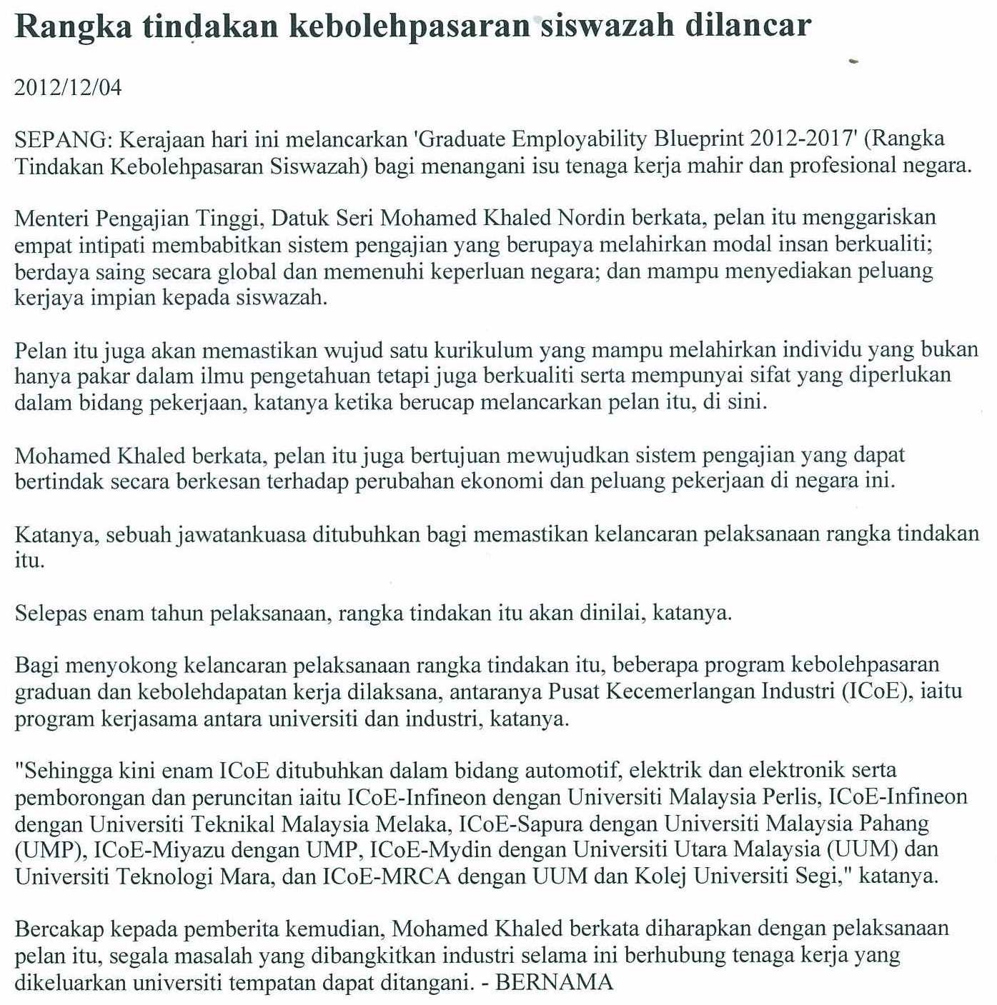 Rangka tindakan kebolehpasaran siswazah dilancar