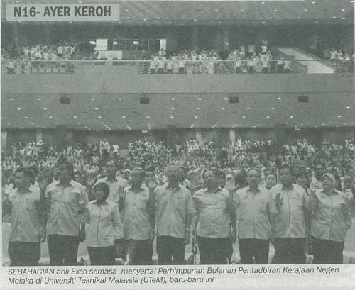 Berita Bergambar- Sebahagian ahli Exco semasa menyertai Perhimpunan Bulanan Pentadbiran Kerajaan Negeri Melaka di Universiti Teknikal Malaysia Melaka (UTeM), baru-baru ini.