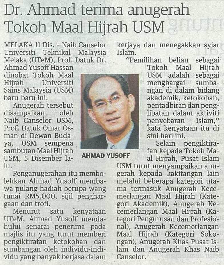 Dr. Ahmad terima anugerah Tokoh Maal Hijrah USM
