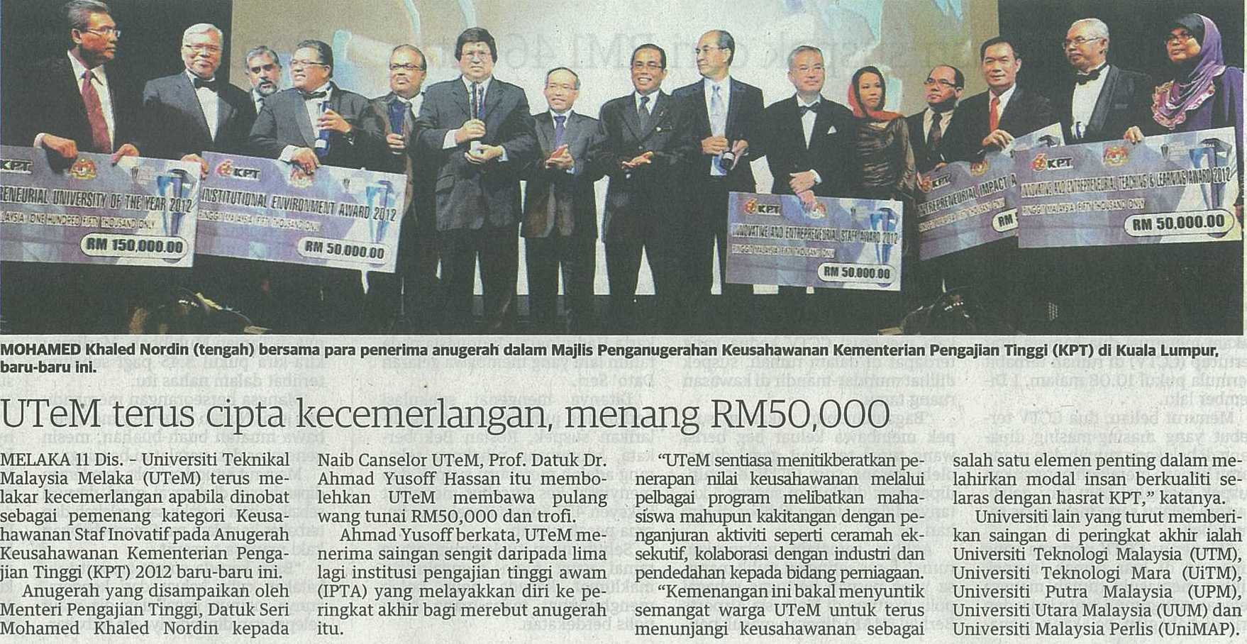 UTeM terus cipta kecemerlangan, menang RM50,000