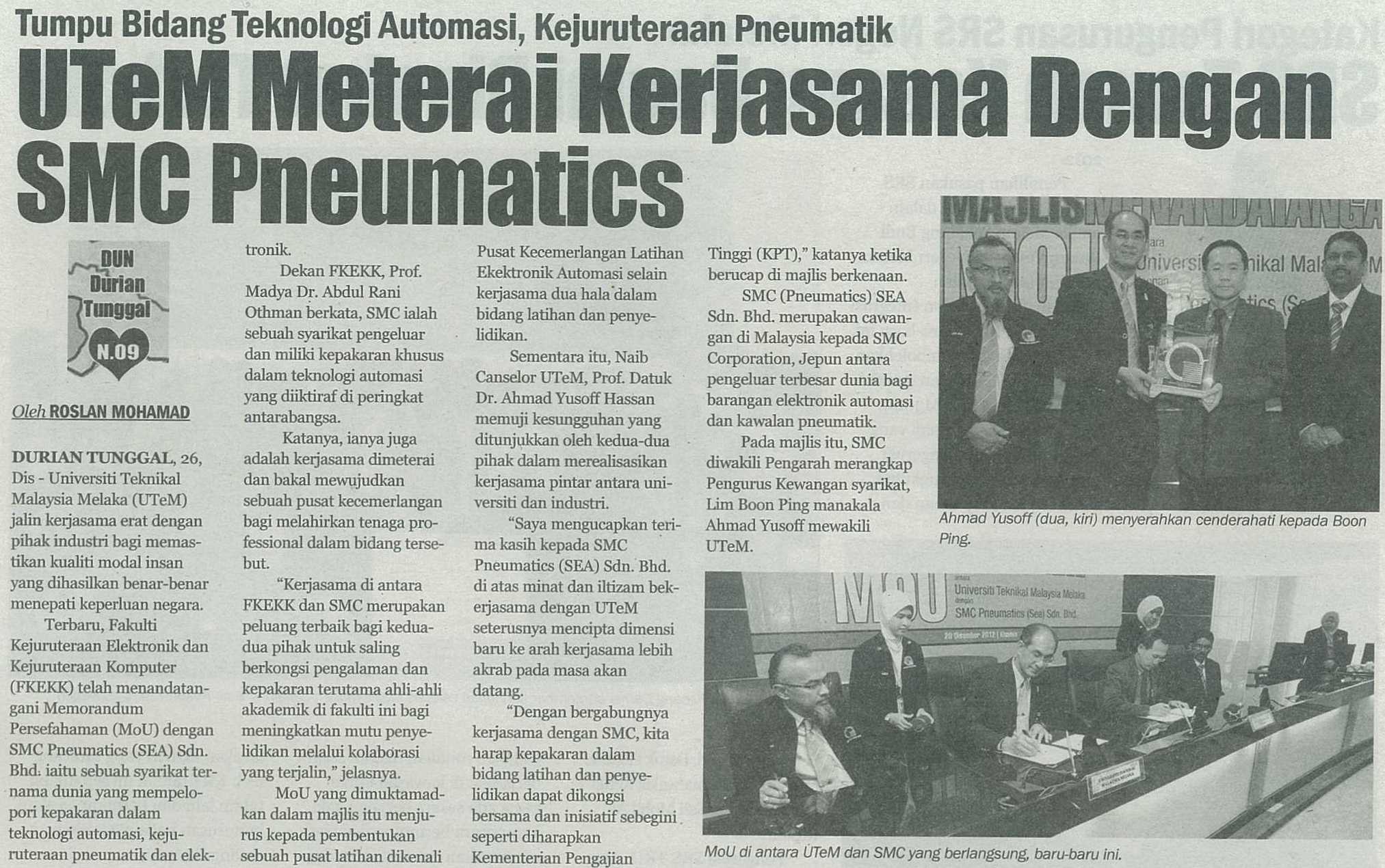 Tumpu Bidang Teknologi Automasi, Kejuruteraan Pneumatik UTeM Meterai Kerjasama Dengan SMC Pneumatics