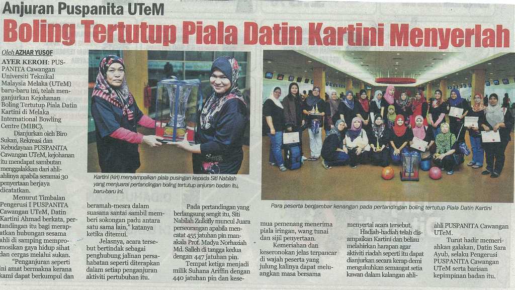ANJURAN PUSPANITA UTEM BOLING TERTUTUP PIALA DATIN KARTINI MENYERLAH