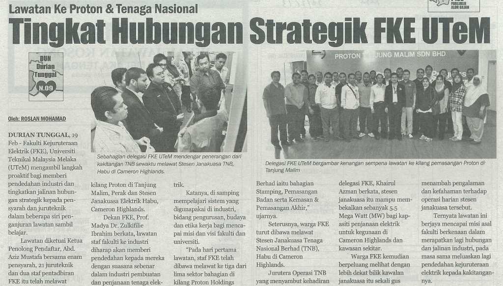 LAWATAN KE PROTON & TENAGA NASIONAL TINGKAT HUBUNGAN STRATEGIK FKE UTEM