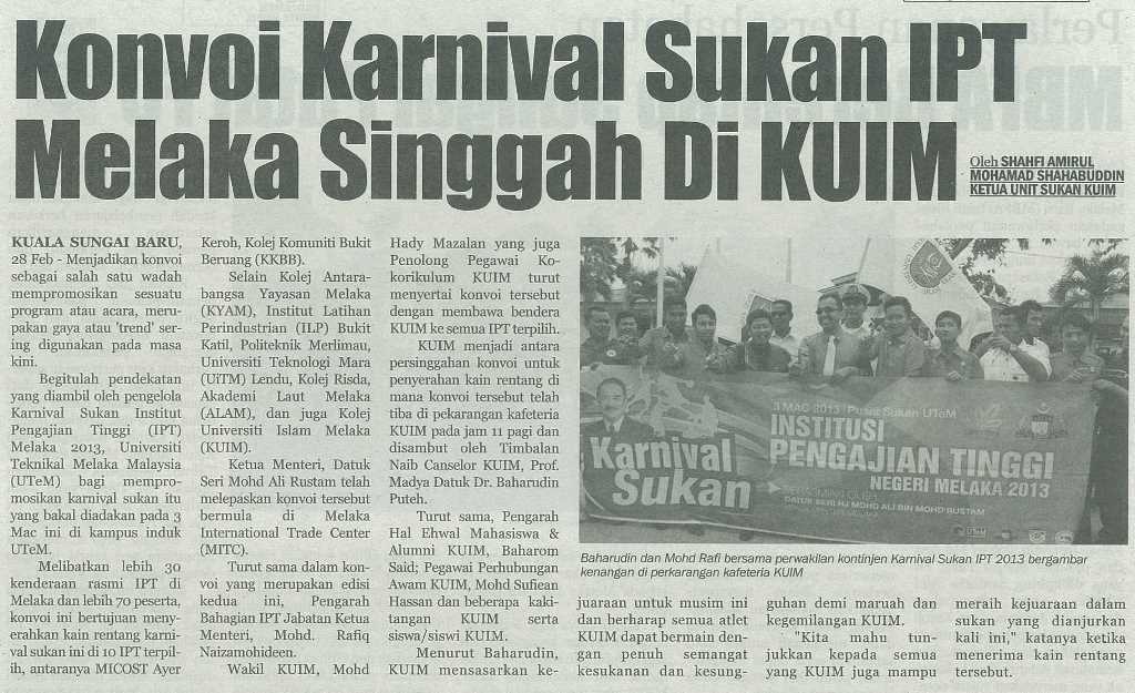 KONVOI KARNIVAL SUKAN IPT MELAKA SINGGAH DI KUIM